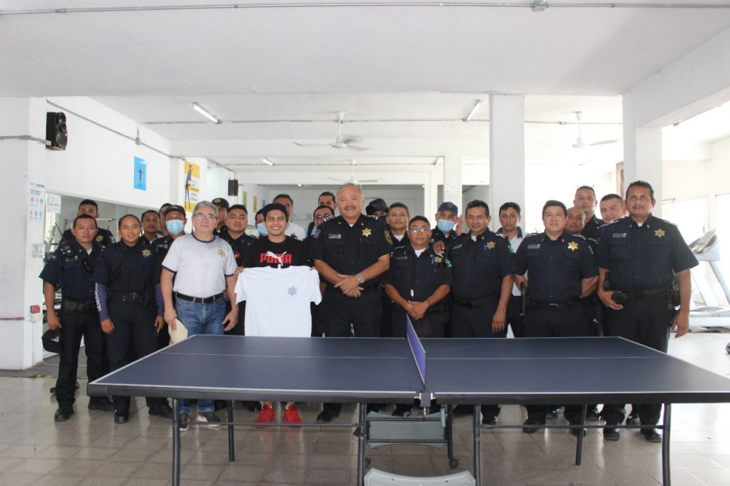 Por su parte Ricardo Villa agradeció la invitación a conocer el gimnasio de la Policía Municipal, así como también realizó una demostración con elementos policiales que tienen el gusto de practicar el Tenis de Mesa.