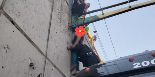 Por medio de redes sociales circulan varias imágenes y videos del momento de angustia que vivieron vecinos y oficiales al intentar rescatar a la fémina que planeaba atentar contra su propia vida.