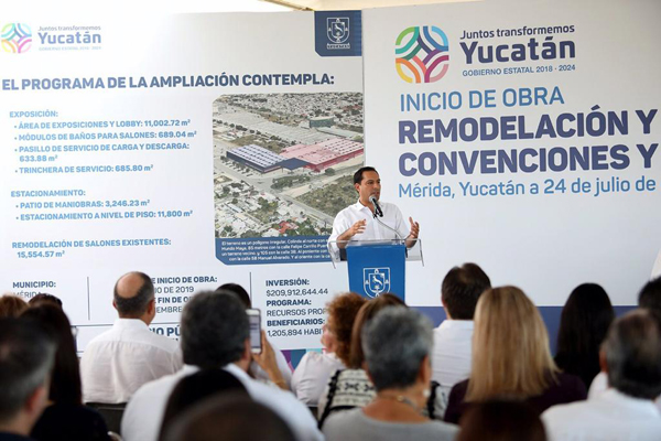 Mérida, Yucatán, 24 de julio de 2019.- El Gobernador Mauricio Vila Dosal puso en marcha los trabajos de ampliación y remodelación del Centro de Convenciones Yucatán Siglo XXI, proyecto que, con una inversión de 220 millones de pesos, representa una de las primeras acciones para recibir en Mérida el próximo año el Tianguis Turístico y que impulsará a Yucatán para colocarse como un referente del turismo de reuniones, congresos y convenciones en el país.