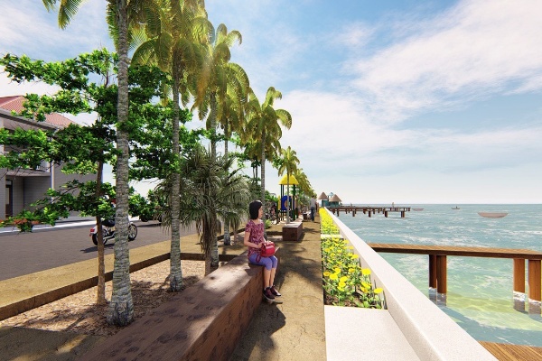 De igual forma, se detalló que para hacer frente al aumento del nivel del mar en el malecón, se implementará una red de drenaje que consiste en la creación de pasos, a base de tubería, para drenar el agua de mar que supere el malecón y devolverla al área al litoral. También, se instalarán colectores pluviales a todo el largo de la zona intervenida para evitar inundaciones.