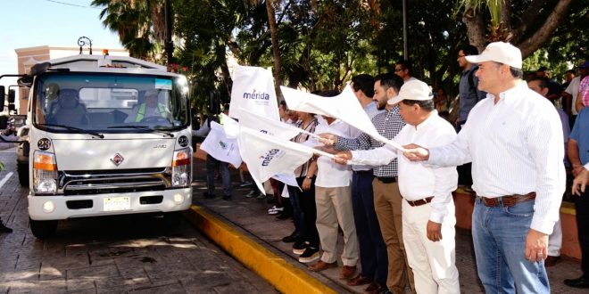 Mérida, 15 de enero de 2019. Esta mañana el Ayuntamiento de Mérida anunció que en beneficio a la ciudadanía se puso en marcha dos nuevas unidades recolectoras de basura de la empresa Pamplona.