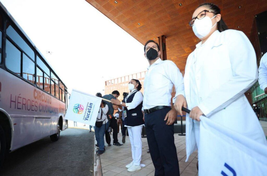 Desde el Centro de Convenciones “Siglo XXI”, Vila Dosal señaló que esta iniciativa inició con la Ruta de la Salud, ante la necesidad de ofrecer traslado al personal del ramo en la pandemia; ahora, se extiende a todas las personas que se han convertido en héroes, por la labor que realizan en favor de la gente.