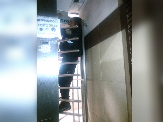 Los hechos indican que cerca de las 6:00 de la mañana de este sábado se informó al mando policiaco del policía atorado en los torniquetes de los baños.