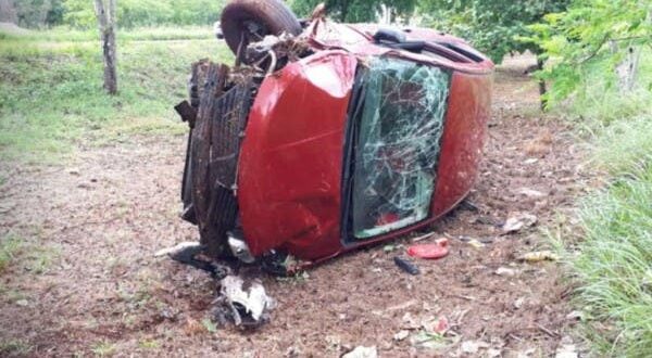 Al salirse de la vía, el conductor se llevó varios árboles hasta quedar volcado en la cuneta central.