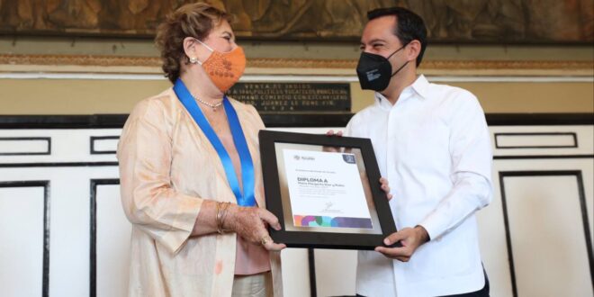 -El Gobernador Mauricio Vila Dosal otorgó la presea a la destacada escritora y fundadora del Patronato Pro Historia Peninsular de Yucatán A.C (ProHispen).
