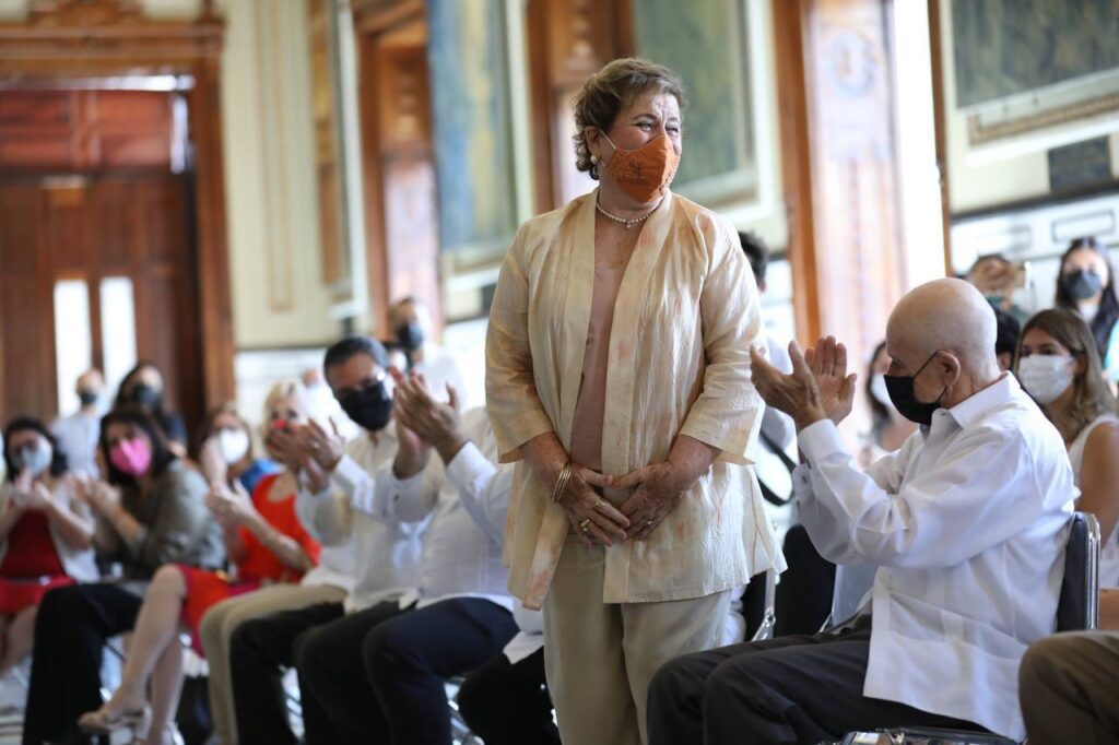 El Gobernador Mauricio Vila Dosal entregó la presea y el reconocimiento a la destacada historiadora e impulsora cultural, quien a través del Patronato Pro Historia Peninsular de Yucatán A.C. (ProHispen) se ha dado a la tarea de resguardar acervos documentales y bibliográficos, además de promover la edición de diversos libros sobre la historia del estado.