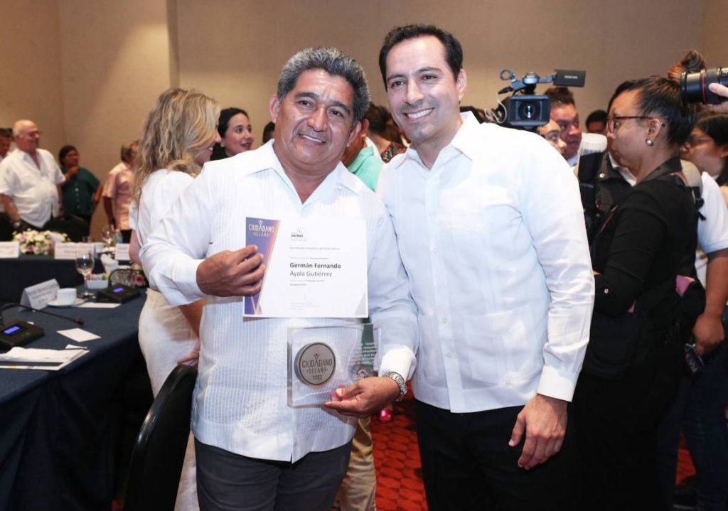 Vila Dosal y Salinas Sada también entregaron este distintivo a Germán Fernando Ayala Gutiérrez y Alex Beyta Dzib, de Campeche, pues igual han servido de inspiración y agentes de cambio en sus localidades, mediante sus labores.
