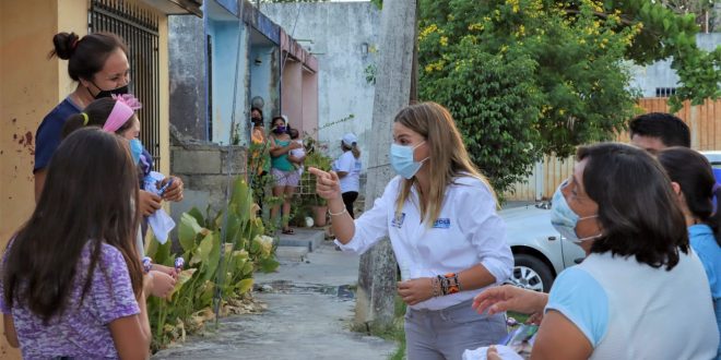 “Nos ha ayudado con calles, problemas de basura, de vigilancia, de diferentes maneras en las escuelas de alrededor y en el Centro de Desarrollo Integral a nosotras las mujeres y nuestros hijos, la verdad ella sí nos ha dado resultados” indicó María Guadalupe Ortiz Noh, vecina del fraccionamiento Fidel Velázquez, acompañada de otras ocho mujeres que salieron al paso de la candidata.