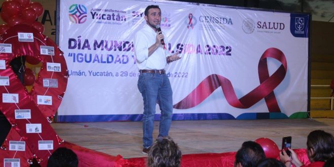 Umán, Yucatán a 30 de noviembre del 2022.- Conmemoran el Día Mundial de la Prevención del VIH, SIDA teniendo como sede nacional el municipio de Umán con un programa que tiene como objetivo crear conciencia entre la población sobre la importancia del autocuidado y la responsabilidad en la vida sexual.