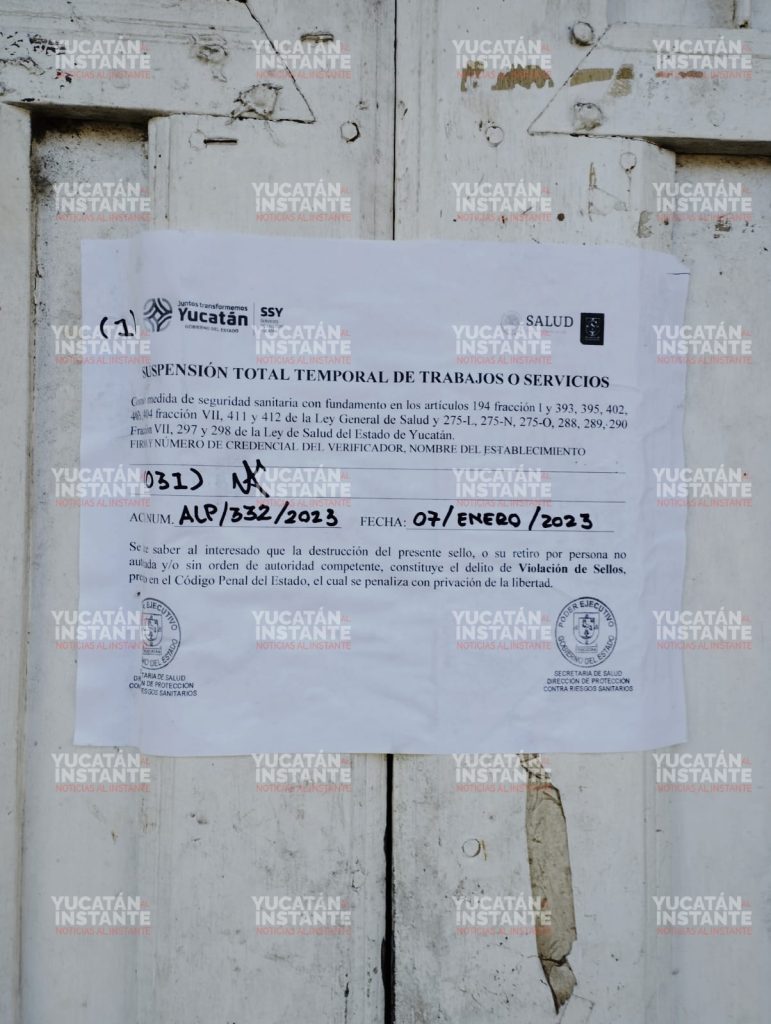 Kinchil, Yuc., a 8 de febrero 2023.- Personal de salubridad estatal, acudió la mañana de ayer presuntamente a una inspección y colocó un sello de clausura en el molino “El Rosario”, situado por la calle 25 entre 24 y 26, de este municipio.