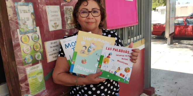 Mérida. Yucatán a 18 de abril de 2023.- Es un hecho que la tecnología ha atrapado el interés de los niños y muchos han disminuido su gusto por la lectura, a pesar que las portadas de los libros de hoy sean de colores vibrantes y ofrezcan un contenido constructivo interesante, las nuevas generaciones optan por elegir un dispositivo tecnológico de vanguardia, las redes sociales, el internet en lugar de adentrarse en un buen libro; en esta ocasión ante el regreso a clases, el ISSSTE presenta una iniciativa fresca y divertida a manera de exposición, plática amena por medio de su biblioteca CNCA-9 “Brenda Maria Alcocer Martinez” que busca que los niños le den una oportunidad al nuevo material literario, señaló la mediadora de lectura Beatriz del Carmen Castillo Vega.
