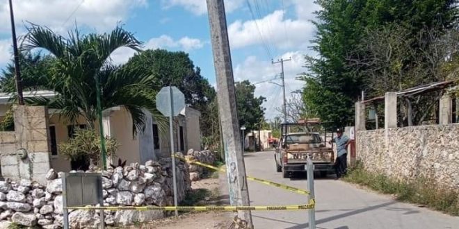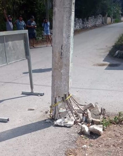 Vecinos de Timucuy piden a la CFE División Peninsular su atención, ya que dicho poste está ubicado sobre la calle 24 x 27 y se encuentra saliendo de su eje; lo que representa un serio riesgo para ellos como localidad y usuarios del servicio.