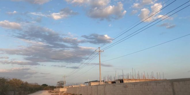 La constructora AMG Desarrollos “plantó” postes de luz en los patios traseros de las casas en residencial Alba en Conkal; un problema que denunciaron los vecinos de la comunidad, pues es evidente el mal trazo del proyecto inmobiliario.
