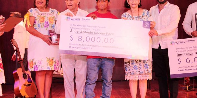 En el marco del Día Internacional de los Pueblos Indígenas, la titular de la Secretaría de la Cultura y las Artes (Sedeculta), en representación del jefe del Ejecutivo, encabezó la entrega de premios a los tres ganadores de la convocatoria titulada “U k´ aayil in k” El Canto de mi Pueblo, del Instituto para el Desarrollo de la Cultura Maya (Indemaya).