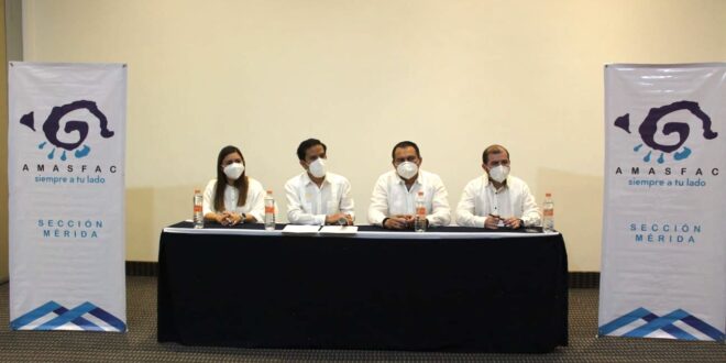 Mérida, Yucatán, 11 de mayo de 2022.- El presidente de la Asociación Mexicana de Agentes de Seguros y Fianzas (AMASFAC) delegación Mérida, Rodrigo Euán Pacheco, presentó a la directiva AMASFAC para el periodo 2022-2023, integrantes que se comprometieron a continuar con la labor de la agrupación que lleva trabajando en la entidad desde 1998.