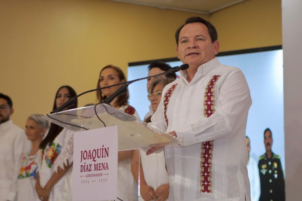 Mérida Yucatán, a 12 de septiembre de 2024.- En un evento marcado por su compromiso con el pueblo, el gobernador electo de Yucatán Joaquín Díaz Mena presentó formalmente a su gabinete para el periodo 2024-2030. En un emotivo mensaje, Díaz Mena destacó la importancia de conformar un equipo de trabajo que refleje los valores de la Cuarta Transformación, centrado en la justicia social, la honestidad y el servicio a los ciudadanos de Yucatán.