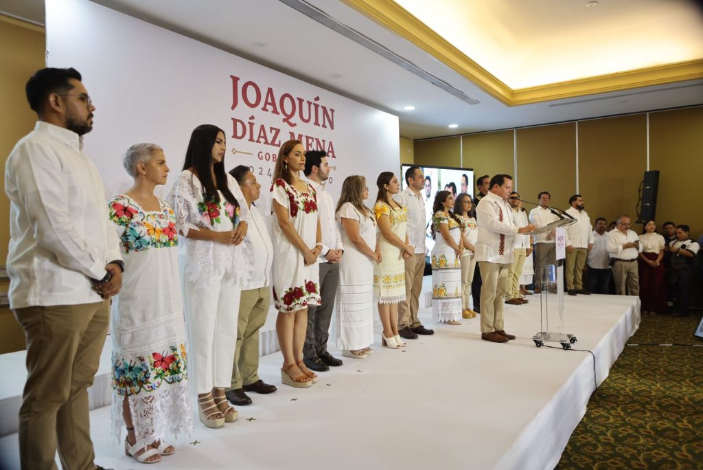 Mérida Yucatán, a 12 de septiembre de 2024.- En un evento marcado por su compromiso con el pueblo, el gobernador electo de Yucatán Joaquín Díaz Mena presentó formalmente a su gabinete para el periodo 2024-2030. En un emotivo mensaje, Díaz Mena destacó la importancia de conformar un equipo de trabajo que refleje los valores de la Cuarta Transformación, centrado en la justicia social, la honestidad y el servicio a los ciudadanos de Yucatán.