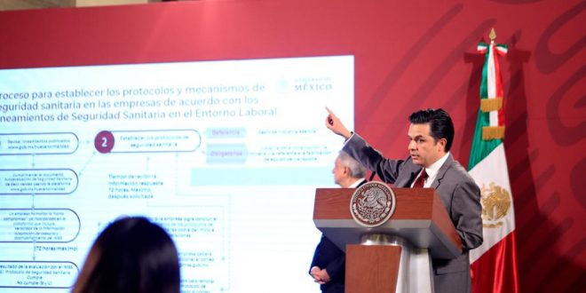 Agregó que luego de esta decisión se publicaron lineamientos técnicos de seguridad sanitaria en el entorno laboral por parte de la Secretaría de Salud, en coordinación con las Secretarías de Economía, Trabajo y Previsión Social, y el Instituto Mexicano del Seguro Social.