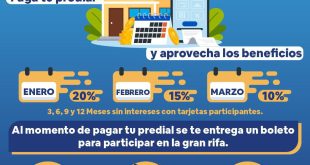 Para facilitar el pago, además de que el trámite se puede hacer en línea como ya se indicó, están a disposición de los contribuyentes 23 centros de cobro en plazas comerciales y dependencias municipales, seis sucursales bancarias y tres cadenas de tiendas de conveniencia. En el caso del pago con tarjetas de crédito, añadió, hay algunas instituciones que ofrecen seis o siete meses sin intereses.