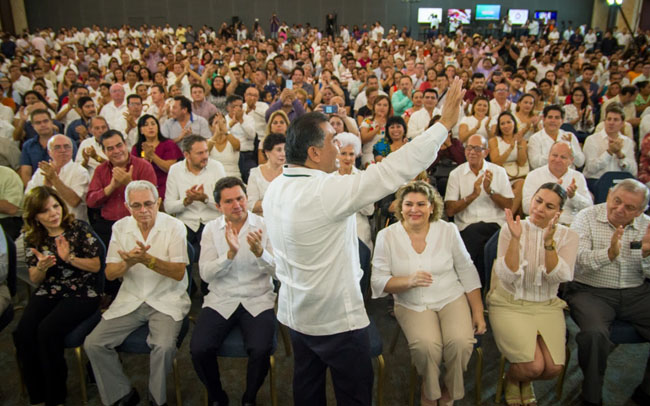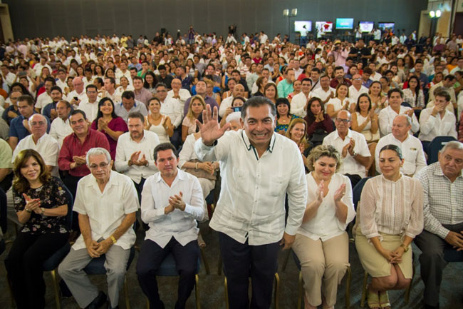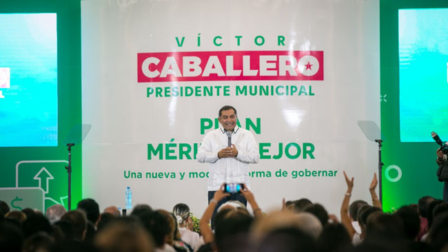 Víctor Caballero expresó a la audiencia reunida en el Centro Internacional de Congresos su firme voluntad de encabezar un gobierno municipal de vanguardia para lograr una ciudad más ordenada, humana, equilibrada y segura, tarea que, dijo, no podrá hacerlo solo, sino con respaldo y confianza de los meridanos.