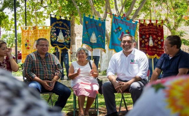 Mérida, 19 de mayo de 2018.- Las tradiciones y costumbres comunitarias de los siete barrios del Centro Histórico forman parte del perfil cultural de Mérida, por lo que el próximo gobierno municipal no sólo las fortalecerá, sino que las promoverá como atractivos para el turismo nacional y extranjero, aseguró Víctor Caballero Durán.