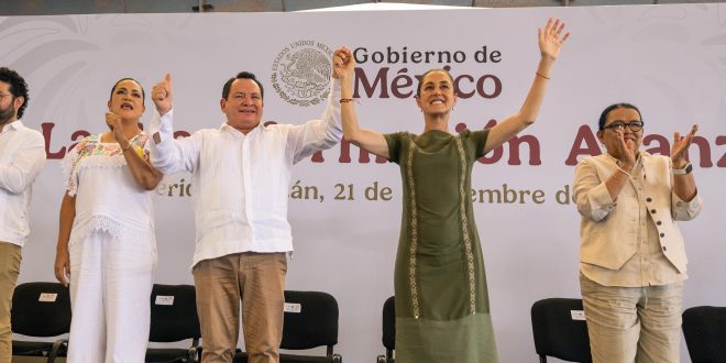 Por su parte, el Gobernador Joaquín Díaz Mena expresó el orgullo de recibir a la primera Presidenta de México en Yucatán, subrayando el carácter histórico de este momento para la República.