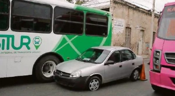 Por la primera vía transitaba el autobús de la ruta Vicente Solís, mientras que el automóvil compacto lo hacía por la calle 46.