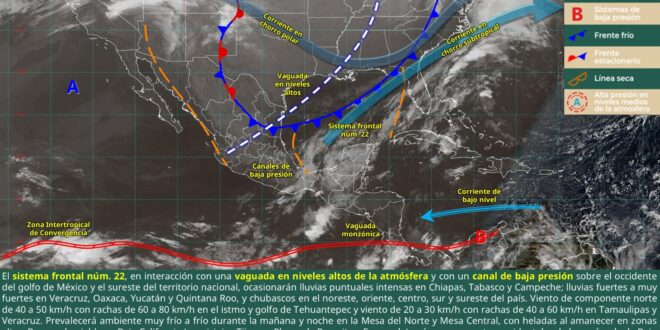 De acuerdo con el pronóstico, se prevén tormentas fuertes en Yucatán y Quintana Roo, mientras que en Campeche podrían registrarse lluvias fuertes a localmente muy fuertes. El ambiente será cálido a caluroso durante el día, y templado a cálido por la noche.