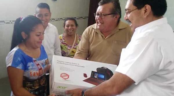 En la entrega de los equipos portátiles, Jennifer Cabrera Cob, Randy Aarón Tun Che y Antonio Ku Puc, acompañados de sus familiares, emocionados agradecieron la entrega de esta herramienta indispensable, hoy en día, para continuar con sus estudios.