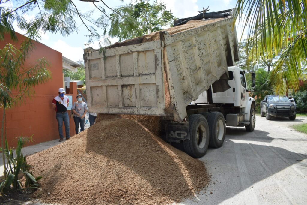 UMÁN, Yuc., 02 de marzo 2022.- El primer edil le apuesta a las comisarías, como en Oxholón, donde hizo la entrega de escombro, cuya petición fue hecha por los habitantes para que puedan extender el material en el camino hacia sus hogares. Es importante mencionar, que en Dzibikak, hizo entrega del mismo apoyo al Jardín de Niños “Valentín Gómez Farías”.
