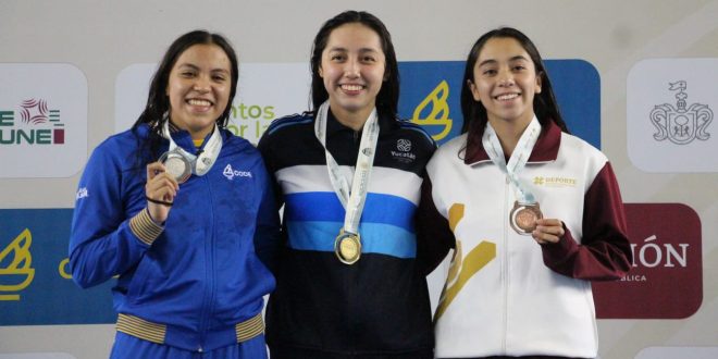 Por su parte Mariana Gil Ortega de la categoría 19-21 años, también aportó par de medallas siendo una de oro y una de plata en las pruebas de 100 metros pecho y 50 metros libres de manera respectiva, en 100 metros pecho la yucateca impuso su calidad de favorita con 1.13.81 minutos de marca, mientras que en los 50 metros libres su tiempo fue de 27.32 segundos y con esto se quedarse con la presea de segundo lugar.