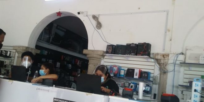 Mérida Yucatán a 22 de agosto 2020- En atención a denuncias ciudadanas, la Oficina de Defensa del Consumidor, Zona Metropolitana de Mérida, de la Procuraduría Federal del Consumidor, aplicó la medida precautoria de SUSPENSIÓN DE LA COMERCIALIZACIÓN a la negociación denominada “Tecno Mundo Plaza” ubicada en la Calle 61 x 54 y 56 en el Centro de esta ciudad de Mérida, que comercializa entre muchos productos tales como cubrebocas, caretas, sanitizantes y demás.