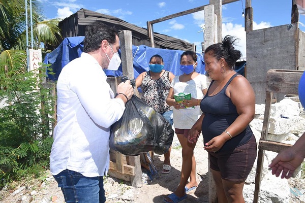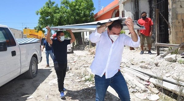 Progreso, Yucatán a 19 de junio de 2020.- Laminas, despensas, pañales y leche para bebé fueron los artículos que el alcalde Julián Zacarías Curi entregó esta semana a 15 familias en situación vulnerable, pertenecientes a la colonia Vicente Guerrero y el puerto de Chicxulub.