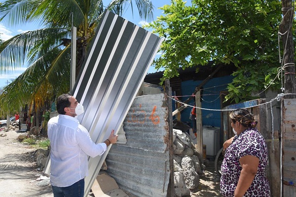 Como la señora Leydi Cauich, de la colonia Vicente Guerrero, quien agradeció la entrega de 4 láminas de metal y una despensa, las cuales favorecerán a su familia integrada por sus cuatro pequeñas, “con las lluvias, se perjudicaron mis láminas de cartón, le agradezco mucho al alcalde la atención a nuestra solicitud. Tengo cuatro hijas y me preocupa su seguridad”, dijo.