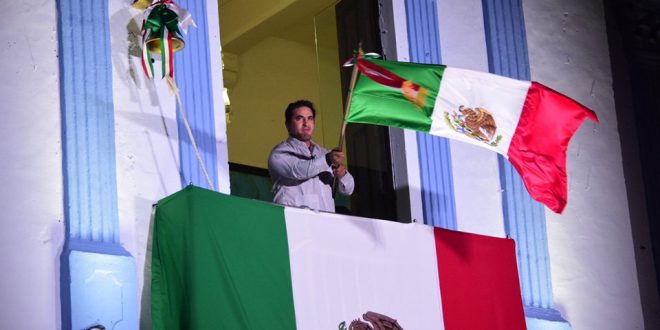 Progreso, Yucatán.- Cientos de progreseños se unieron este domingo por la noche al tradicional Grito de Independencia y junto al alcalde Julián Zacarías Curi, vitorearon los nombres de quienes lucharon por la libertad y un trato justo en nuestro país hace 209 años.