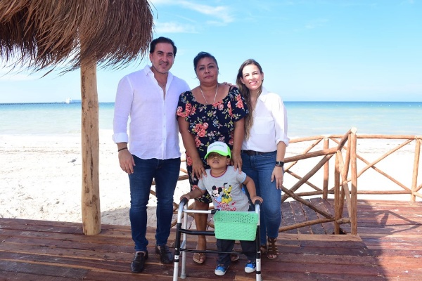 Progreso, Yucatán a 30 de octubre de 2019. Hoy por la tarde, el alcalde Julián Zacarías Curi, acompañado de su esposa, Alma Gutiérrez, presidenta honoraria del DIF municipal así como del pequeño Elian Villegas, en representación de los beneficiados, dio el banderazo de inicio a una de las obras más importantes para el puerto, las adecuaciones para una playa con acceso a personas con discapacidad, las cuales se dispondrán en la parte céntrica del malecón tradicional.
