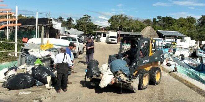 Progreso, Yucatán, a 15 de diciembre de 2025.— La Dirección de Servicios Públicos, por encomienda del alcalde Erik Rihani González, refuerza las labores de limpieza y mantenimiento en el refugio pesquero “La Caleta”, espacio donde mujeres y hombres de mar desarrollan su actividad diaria para el sustento de sus familias.