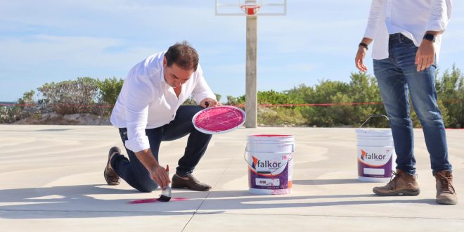 Progreso, Yucatán a 29 de diciembre de 2023. Recientemente, el alcalde Julián Zacarías Curi supervisó los trabajos que se realizan en lo que será la nueva cancha de básquetbol, ubicada en el malecón internacional, a un costado del Skatepark.