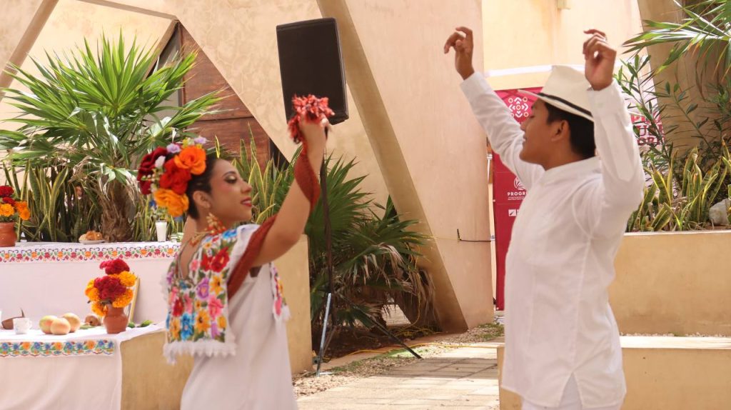 La muestra presentó elementos típicos, entre ellos un altar de Hanal Pixán, “comida de las ánimas”, que los visitantes pudieron apreciar en las jardineras del museo, ubicado en el Boulevard Turístico Malecón.