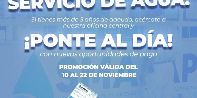 Progreso, Yucatán, a 16 de noviembre de 2025.— Del 10 al 22 de noviembre, el Sistema de Agua Potable y Alcantarillado de Progreso (Smapap), por encomienda del alcalde Erik Rihani González, estará aplicando promociones para sus usuarios, tanto para quienes se mantienen al corriente como para aquellos que han tenido dificultades para ponerse al día, informó Bjorn Miguel Rodríguez Estrada, titular de la paramunicipal.