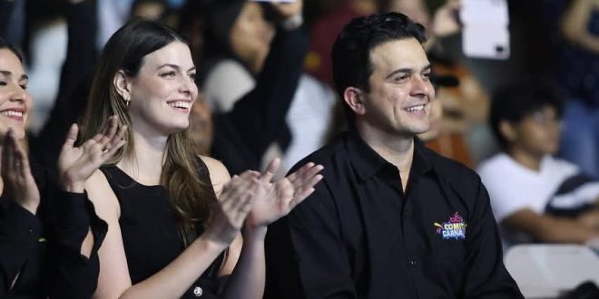 Frente al Palacio Municipal, el alcalde Erik Rihani González, acompañado de su esposa, la señora Alexis Abimerhi Douglas, y miembros del Comité del Carnaval, encabezado por Marytere Bates Hevia, invitó a locales y visitantes a sumarse a las festividades carnestolendas, algunas de las cuales tendrán como escenario la icónica playa de Progreso.