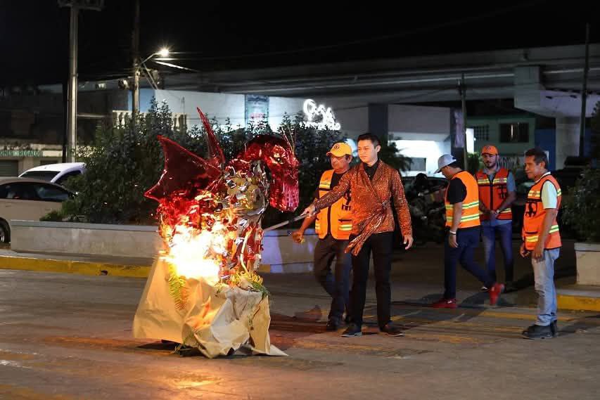 Como parte del evento, se llevó a cabo la quema del Mal Humor, representado por un dragón que, entre luces y pirotecnia fría, simbolizó el fin de las preocupaciones y la bienvenida a la alegría del Carnaval.