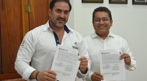 Progreso, Yucatán.- El Alcalde Julián Zacarías Curi firmó esta mañana un convenio con la JAPAY para trabajar de la mano por medio de asesoría técnica, así como también para brindarle a quienes vivan en la capital yucateca, pero que con residencia en el puerto o alguna de sus comisarías, la oportunidad de hacer sus pagos en las oficinas de dicha dependencia.