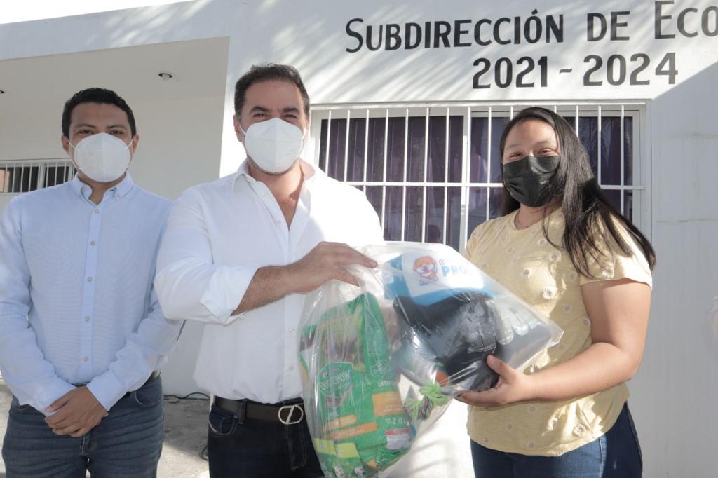 Progreso, Yucatán a 8 diciembre 2021.- Esta mañana, el Presidente Julián Zacarías Curi, asistió a la premiación del nombre de la nueva mascota de Prolimpia, y entrega de la carta de adopción del cachorro “Proli”.