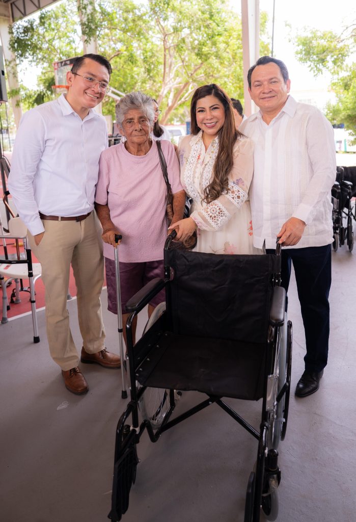El Gobernador Joaquín Díaz Mena, acompañado por la Presidenta Honoraria del DIF Yucatán, Mtra. Wendy Méndez Naal, encabezó la entrega de sillas de ruedas, andaderas, bastones, muletas y triciclos, equipos que representan una inversión superior a 158 mil pesos y que significan una mejora tangible en la vida de quienes los reciben.