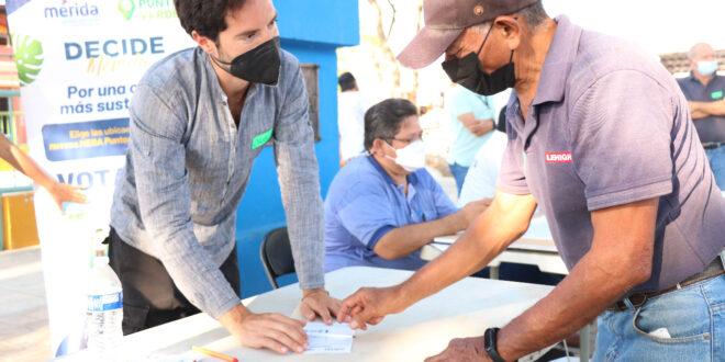 Expuso que los tres mega puntos verdes que se instalarán este 2022 estarán, de acuerdo con el número de votos, en las siguientes colonias: Pensiones (468), Yucalpetén (324) y Circuito Colonias Oriente (290). Mientras que para el período 2023-2024 se instalarán en los siguientes puntos: Fraccionamiento del Parque (276), Mulsay (266), carretera Mérida-Cholul (216), San Ángelo (209) y Pinos (176).