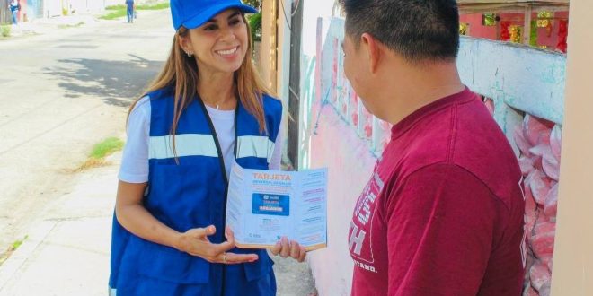 La funcionaria estatal explicó casa por casa cómo funciona la Tarjeta Universal de Salud, que les permitirá acceder a nuevos servicios gratuitos en los Centros de Salud de todo el estado a partir de enero de 2024, así como atención médica durante las 24 horas, seis días a la semana, con servicios de laboratorio para análisis clínicos, ultrasonido y atención psicológica.