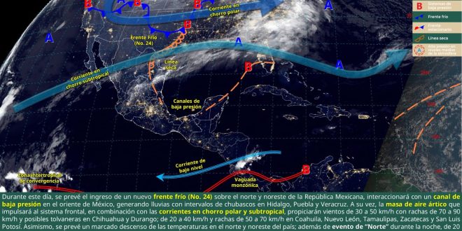 Parte del dominio del sistema anticiclónico cubriendo la península de Yucatán, estará dejando tiempo más estable y seco sin lluvias en la región. Además, el