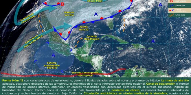 Se prevé que durante este día se presenten condiciones de cielo parcialmente nublado sobre sectores del norte, centro y oriente de la región, debido al ingreso de aire marítimo tropical que será impulsado por la circulación anticiclónica que domina sobre el golfo de México y mar Caribe, con probabilidad para intervalos de chubascos en la costa centro y sur de Quintana Roo, mientras que para el norte de Yucatán y sur de Campeche se esperan lloviznas aisladas.