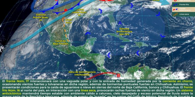 Durante este día se espera que se presenten condiciones de cielo parcialmente nublado a medio nublado, con probabilidad de chubascos dispersos en sectores del centro y sur de Quintana Roo y de manera más aisladas en el oriente y noreste de Yucatán, así como en el centro de Campeche, esto debido al ingreso de aire marítimo tropical que es impulsado por la circulación anticiclónica que domina sobre el golfo de México y mar Caribe. Asimismo, se prevén temperaturas frescas a templadas al amanecer y cálidas a calurosas durante el día, con vientos dominantes del sureste de 15 a 25 km/h y rachas de 45 km/h o más en zonas costeras.